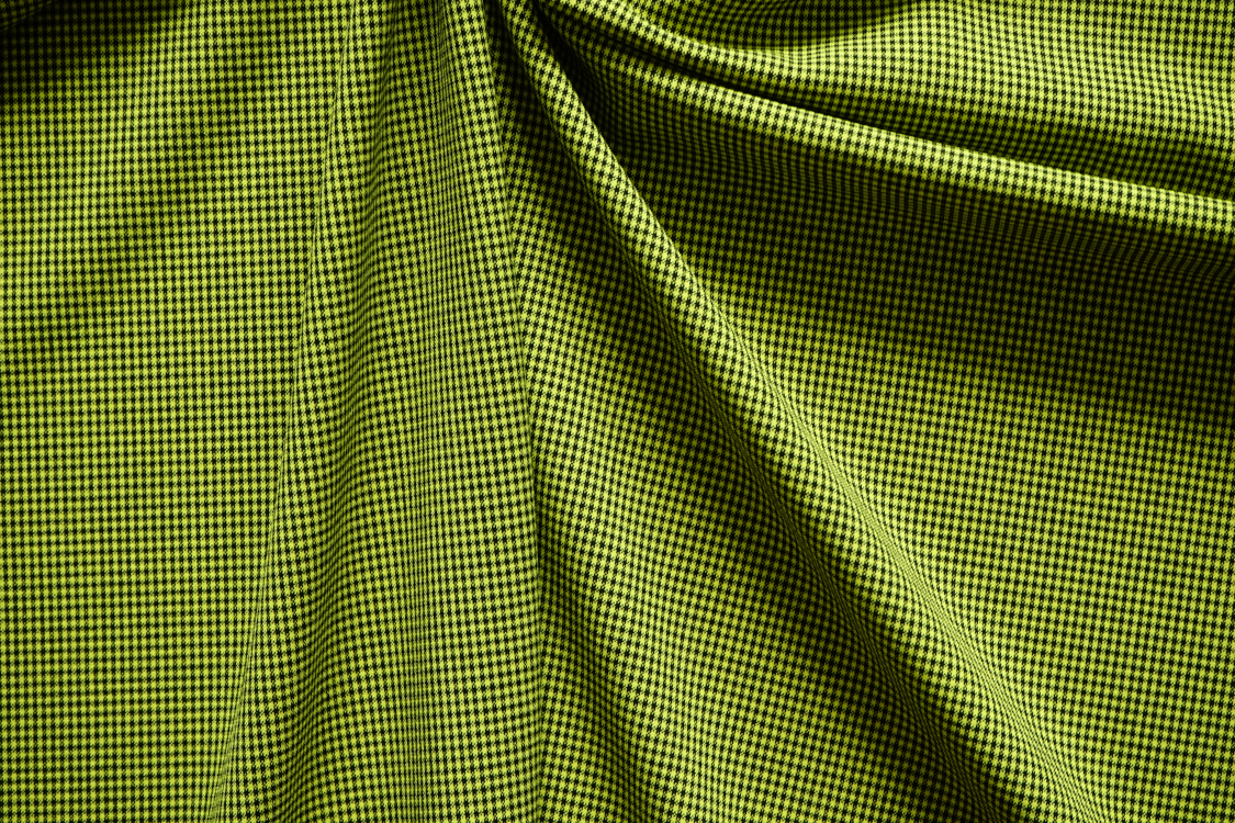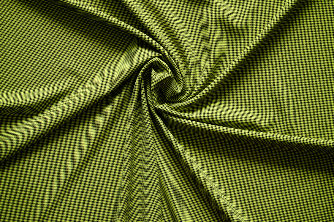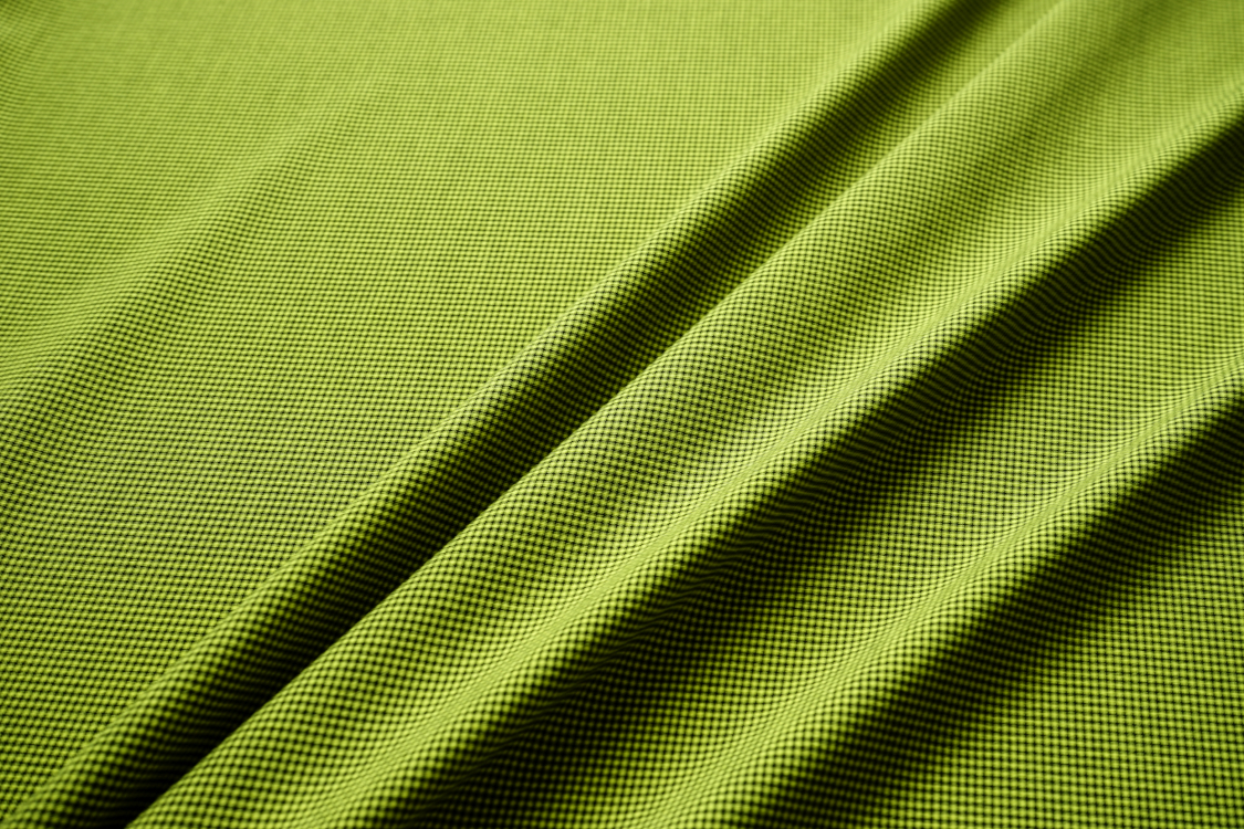 Włoska tkanina o prostym splocie, średniej grubości, elastyczna, ładnie się układa. Bardzo drobna pepitka zielono- czarna. Nadaje się na sukienki, spódnice, kostiumy, żakiety, spodnie. Nie wymaga podszewki.